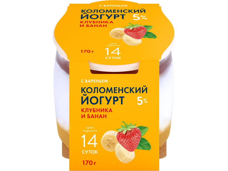 Йогурт Коломенский клуб/банан 5 % 170 гр ст/б Россия