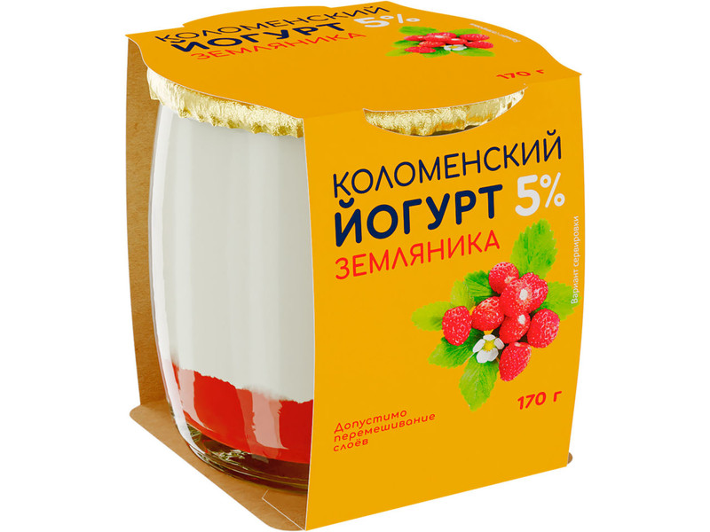Йогурт Коломенский земляника 5 % 170 гр ст/б Россия