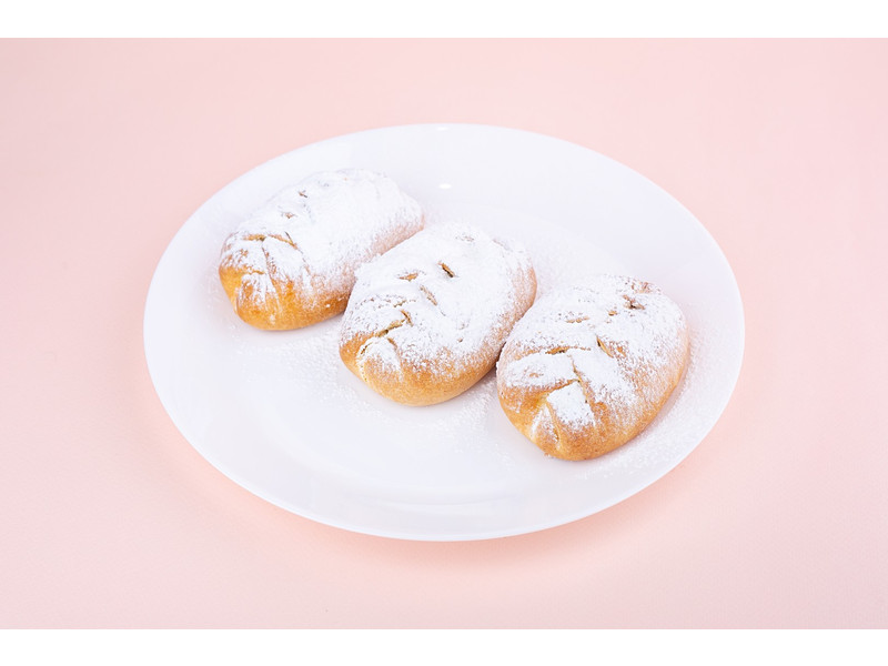 мука ,молоко,яйцо куриное,сахар,дрожжи,маргарин, масло сливочное, вишня , яблоко,загуститель,соль,сахарная пудра
