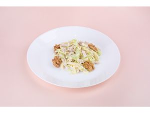 куриное филе,свекла,майонез,орех грецкий,морковь по-корейский,картофель «пай»,чеснок,соль,перец.