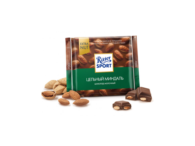 Шоколад Ritter Sport молочный цельный миндаль Extra nut 100 гр Германия