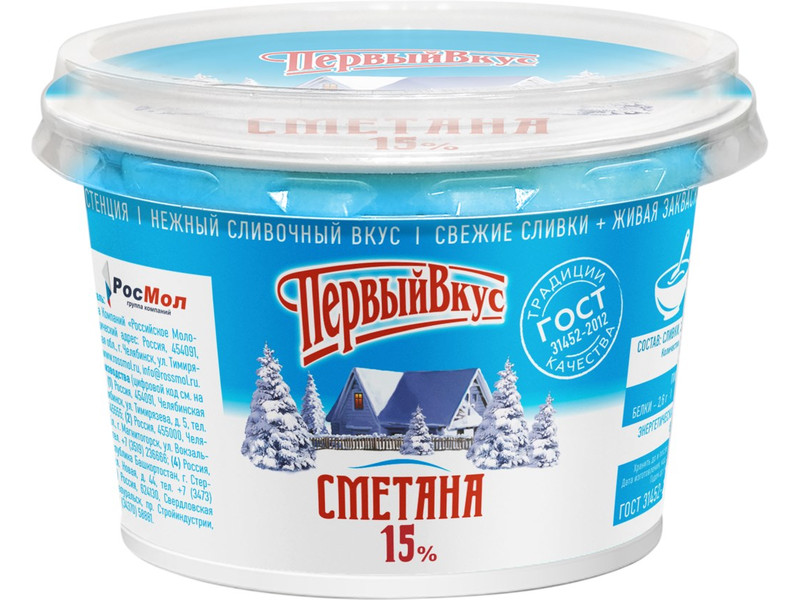Сметана Первый вкус п/стак 15% 200 г Россия I