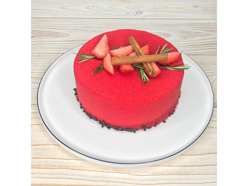 Сливки,сыр кремико,сахар,йогурт,желатин,велюр ,шоколадная посыпка, клубника, розмарин.